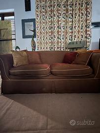 Divano 3 posti fatto a mano dal tappezziere in vellito rigato bordeaux e ocra. Molto bello e comodissimo. Usato ma tenuto benissimo. Possibile solo con ritiro sul posto non si puo spedire.
