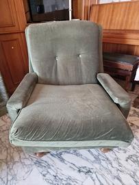 divano colore verde + poltrona stesso colore; si trovano in un appartamento al terzo piano in zona largo dei Colli albani