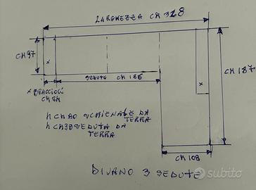 Divano marca Pianca di Treviso con penisola. In tessuto completamente sfoderabile. Dimensioni divano: lunghezza totale 328cm e lunghezza massima 187cm (penisola). Vedi immagine allegata per dettagli. Ritiro e trasporto a carico dall'acquirente. Disponibile da inizio febbraio.