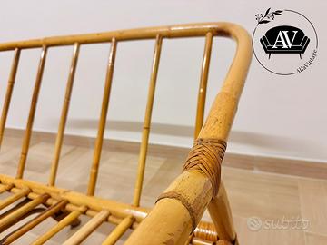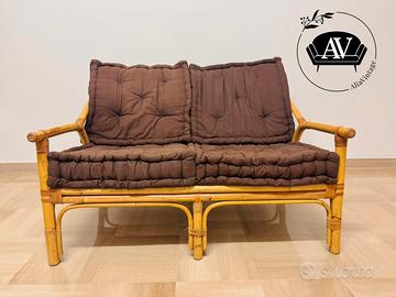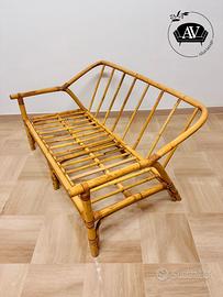Divano vintage 2 posti, anni '70/'80, in bambù e rattan intrecciato.
