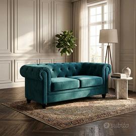 🔵 Nuovo di magazzino ( Venduto da negozio ) 🔵 Chiedere per pagamento in contrassegno Stile senza tempo, design inglese ricercatissimo Poco ingombrante, ma comunque comodo e spazioso Materiali premium Stile Inglese Posti / Sedute 2 Colore Turchese Materiale Rivestimento Velluto Materiale Struttura Acciaio Piega / lavorazione Stile Captonnè Questo divano 2 posti possiede piccole e robuste gambe in legno, poggia braccia e schienale trapuntato che gli donano un'aria vintage molto interessante. La profondità della seduta garantisce il massimo comfort per due persone. Questo modello CHESTERFIELD è indirizzato a coloro che sono appassionati di arredamento vintage pur rimanendo a passo con i tempi. Il suo stile leggendario è valorizzato dal rivestimento in velluto di alta qualità. Apprezzerete questo modello per la sua semplicità e la sua eleganza evergreen con i disegni tipici dei suoi ampi braccioli e il suo schienale trapuntato Stile Captonnè. Disponibile in Diverse Colorazioni