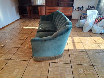 Vendo divano vintage 3 posti in velluto verde Dimensioni: Lungo 225 cm Profondo 85 cm Alto 80 cm Il divano è abbinabile anche con 2 poltrone (le trovate sotto il mio profilo)