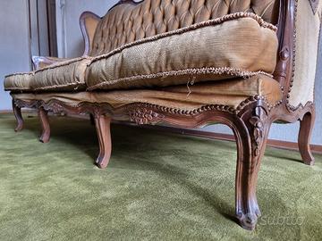 Vendo divano vintage acquistato negli anni 60, in legno e velluto nocciola, stile Capitonnè. Perfetto stato di conservazione, quasi come nuovo.