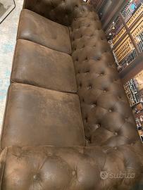 Chesterfield - Divano imbottito 3 posti in suede marrone - Lineare 202cm