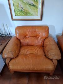 Iconici pezzi di design italiano, originali degli anni ’70, firmati Tobia Scarpa per B&B Italia. Struttura solida, imbottitura ancora confortevole e rivestimento in pelle vintage. Conservati con cura per decenni in ambiente domestico. Le sedute presentano piccoli strappi in due punti: uno sulla poltrona e sul divano, dovuti al naturale invecchiamento della pelle. Perfetti per chi ama il fascino autentico del modernariato e desidera restaurare o valorizzare pezzi storici. Prezzo trattabile.