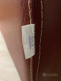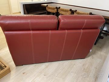 Divano vera pelle color bordeaux con cuciture chiare. Doppia seduta. Made in Italy.