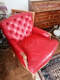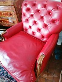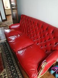 salotto vintage anni 60 in vera pelle fiorentina di colore rosso tipo Chesterfield formato da divano tre posti e due poltrone in ottime condizioni