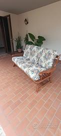 Divano vintage 3 posti in condizioni pressoché perfette. Struttura in vero legno color noce. Cuscini in ottime condizioni, completamente sfoderabili e lavabili. In perfetto stile country, è ideale per ambienti rustici, case di montagna/collina
