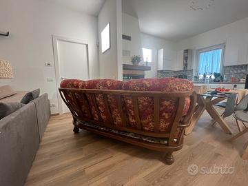 Divano 3 posti in legno, molto solido e comodo. Cuscini imbottiti con tessuto floreale in buone condizioni. Ideale per taverna o casa in stile classico. Prezzo 150€ trattabili – ritiro a Villafranca di Verona.