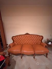 Divano antiquariato in pelle, produzione anni 50. Usato per esposizione e per uso domestico/ relax. No segni di usura, colore marrone e vera pelle. Cuscini rimovibili. Vendo per inutilizzo. Prezzo leggermente trattabile.