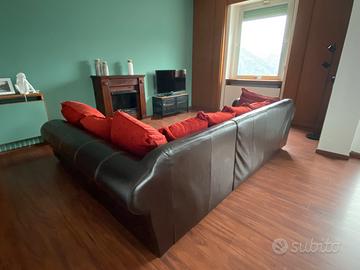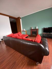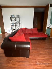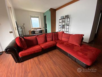 Divano vintage etnico ad angolo in pelle marrone e velluto rosso. Condizioni ottime, ben tenuto. Dimensioni: 2,90 m x 2,30 m, forma angolare. Ritiro in loco a carico dell’acquirente. Trattabile