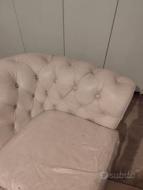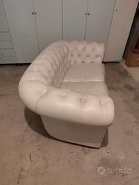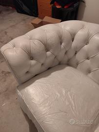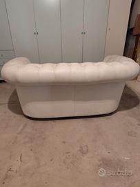 Divano modello chesterfield 2 posti vintage bianco produzione artigianale imbottito rivestimento in pelle fiore