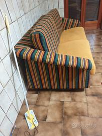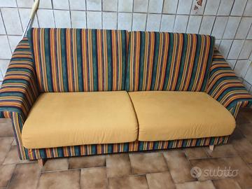Divano vintage righe colorate retrò - Perfetto per casa boho! 200€Descrizione: Splendido divano 2-3 posti vintage, tessuto righe arcobaleno (verde/arancione/giallo), struttura legno solida. Sedute comode, stato buono (cuscini ok, facile ritappezzare). Ideale stile retro/70s. Dimensioni approx: L190xP90xH85cm] No fumo/animali. Ritiro martina franca chiamtare per concludere l affare Contattami!