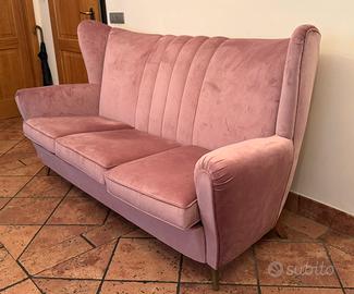 Vendo bellissimo divano vintage 3 posti, caratterizzato da una linea elegante e senza tempo, perfetto per ambienti in stile retrò, chic o contemporaneo.