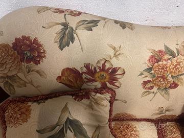 Divano in stoffa floreale e cuscini