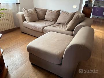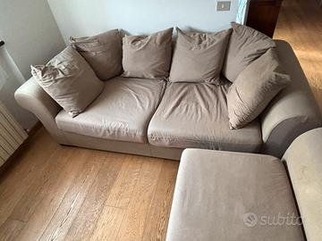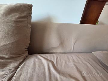 Vendo divano in tessuto color beige, comodo e spazioso, adatto a salotto o soggiorno.