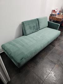 Vendo elegante divano Westwing in velluto verde salvia, dallo stile moderno e minimale, perfetto per salotti, studi o sale d’attesa.