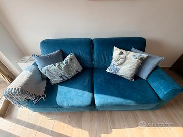 Divano molto comodo sia come seduta che come letto, ideale per ospiti o per un utilizzo quotidiano. Tessuto elegante color blu petrolio.