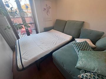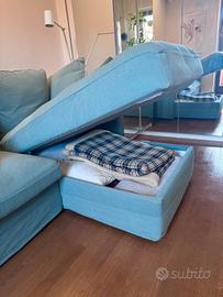 Divanoletto IKEA Grönlid verde turchese + accessori – come nuovo (NON SPEDISCO MA SOLO PER UN RITIRO IN PERSONA) Vendo splendido divano IKEA Grönlid in elegante colore verde turchese, dimensioni 270 x 165 cm, completo di chaise longue con vano contenitore (perfetto per riporre coperte, cuscini, ecc.). ✔️ Inclusi: 6 cuscini grandi originali Materasso/imbottitura completa Tavolino porta PC (valore circa 50€) Mensola a due ripiani (valore circa 50€) 6 cuscini Maison du Monde, molto eleganti (valore ~30€ ciascuno) 💰 Valore totale originale: oltre 1500€ 👉 Prezzo richiesto: 350€ per tutto 🟢 Condizioni: ottime, praticamente come nuovo ❗ Non include le lampade visibili in foto 📦 Smontaggio e trasporto a carico dell’acquirente Perfetto per chi vuole arredare con stile risparmiando: comodo, spazioso e già completo di accessori.