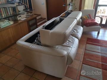 La pelle del divano presenta normali segni di usura dopo anni di utilizzo.