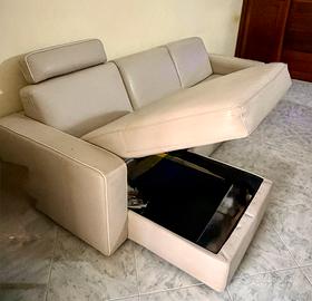 Divano Natuzzi in pelle 3 posti con chaise longue contenitore + letto (materasso nuovo)