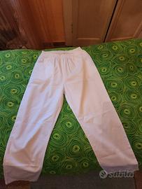 Due paia di pantaloni di colore bianco, taglia M con vita elasticizzata (lunghezza 101 cm, circonferenza fianchi 110 cm).