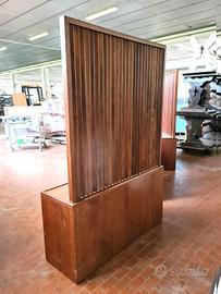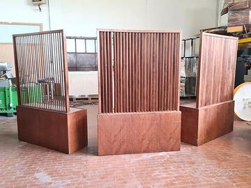divisori per ristorante usati, si tratta di tre mobili separé in legno con ripiano basso e parete in listelli obliqui utili per: privè in locali da cerimonia, ristoranti con eventi, hotel o delimitazione in bar con zona slot. dimensione: 125X40cm h62/181cm il prezzo è di 250€ cad. se li prendi tutti sono 600€ iva e trasporto esclusi.
