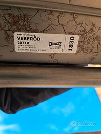 Attaccapanni Ikea bifacciale con grata metallica, ganci posizionabili a piacere, e rotelle. Prodotto fuori catalogo, produzione 2018. Colore grigio con decori effetto ruggine. 10 ganci originali (di cui 1 con tracce di ossidazione) e 3 ganci aggiunti in seguito fissati con viti. Ottime condizioni generali.
