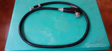 Doccetta per lavabo - universale in ABS cromato da 150 cm e deviatore in ottone cromo. La doccetta per lavandino è la novità del momento appositamente ideata per molteplici utilizzi e scopi. Sia che venga incorporata ad un miscelatore lavabo o ad un rubinetto da esterno,è capace di offrire un getto intenso e rilassante volto alla cura dei propri capelli e al contempo perfetto per risciacquare i propri oggetti e animali. Completamente realizzata in ABS solido dalla finitura cromata,resiste ad eventuali urti e abrasioni,mantenendo le proprie caratteristiche strutturali e estetiche inalterate nel corso del tempo. La doccetta a mano per lavandino è facile e veloce da installare,basterà difatti avvitare il deviatore in dotazione al proprio rubinetto e collegare l'apposito flessibile da 150 cm negli attacchi prestabiliti. Per di più la doccetta lavatesta include un pratico supporto a gancio resistente,che oltre a garantire un comodo appoggio sul quale riporre il doccino, evita di praticare fastidiosi fori sulla propria parete. Comprensiva di deviatore a piacimento per regolare il flusso d'acqua tra la doccetta e il rubinetto per lavabo attraverso la levetta presente. Doccetta per lavabo - riepilogo caratteristiche: Tipologia:doccia per lavandino universale; Materiale:ABS Finitura:cromato Dimensioni doccetta:H 11 x ø 5.3 cm; Dimensioni supporto:H 9.5 x L 7 cm; Deviatore in ottone cromato; Laccio doccia da 150 cm
