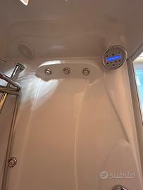 idromassaggio a 4 vie: testa (3 getti), corpo (5 getti), cervicale (2 getti) , caviglie (2 getti)