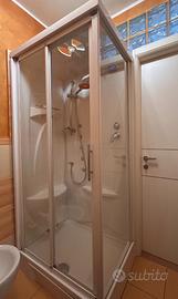Doccia multifunzione modello New Holiday in vetro, misure 100x700, installazione angolo sinistro.