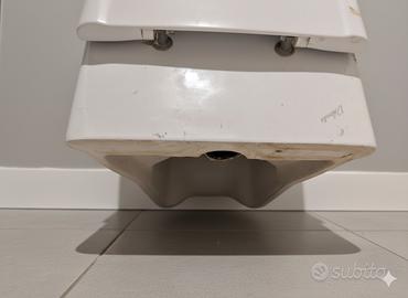 CERAMICA DOLOMITE Vaso WC sospeso modello Clodia a cacciata con scarico orizzontale (6 litri). Funzionante con passo rapido e flussometro, cassetta alta o immurata. Completo di sedile in termoindurente con cerniere in acciaio inox. Fissaggio tramite tasselli ad espansione.