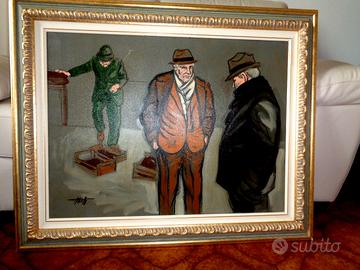 Domenico Cancelli, importante artista romagnolo. Quadro intitolato: "Al mercato" Dipinto ad Olio su tela di ampie dimensioni: cm 60 x 80, anno di esecuzione 2003. Opera gradevolmente incorniciata.