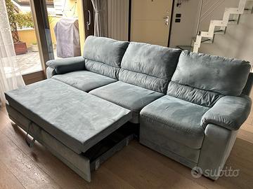 Divano di ottima qualità e fattura di “Dondi salotti”. Presenta un poggiagambe richiudibile. Lunghezza divano 260 cm Larghezza 90 cm Altezza 90 cm Attezza seduta 45 cm