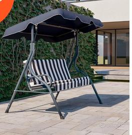 Dondolo da giardino, nuovo 3 posti in acciaio in tessuto x esterno blu e bianco. x informazioni 345 1736985 ( Ancora imballati, disponibili anche n 2 )
