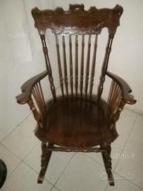 Dondolo in legno massiccio color noce con qualche ritocco da fare ben centrato nel dondolarsi euro 80 solo ritiro od in alternativa si spedisce tramite corriere al costo di 25 euro circa