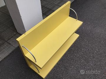 Doppia mensola libreria color giallo chiaro di design in legno massiccio. Misure: larghezza cm.95 profondità cm.28 altezza cm. 57 Ritiro a mano su Bologna e Provincia