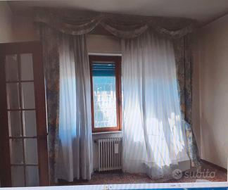 Vendo doppia parure di tende per : - una finestra grande ( oltre 2 metri di larghezza ) - una finestra di dimensioni standard. Embrasse e mantovana in crétonne fantasia e sotto tende leggere in tinta unita.