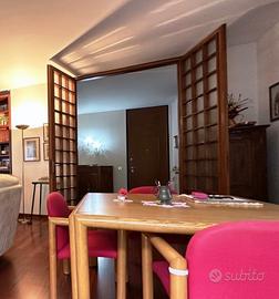 Vendo porta di pregio a doppia anta in legno massello color noce marrone con sfumature calde e riquadri in vetro smerigliato, condizioni perfette.