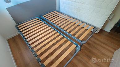 Vendo causa inutilizzo di due reti Letto comprensive di una quinta gamba per unirlo insieme e fare letto matrimoniale, a regalo anche testata Grigia in legno fai da te.