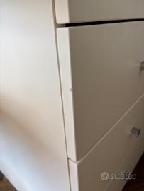 Vendo scrivania con doppia postazione in legno laccato di alta qualità realizzata da un artigiano falegname. La scrivania presenta per ogni postazione 4 cassetti e uno sportello con 3 ripiani al suo interno. Il tavolo presenta piccoli segni di usura (come da foto).