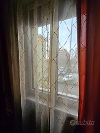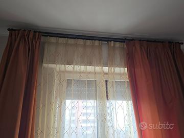 Set di tende in tessuto, con una combinazione di colori beige e arancione. - Design elegante con motivi. - Adatte per arredare diversi ambienti. -- Con doppio bastone -- Altezza tende cm260 -- Lunghezza bastoni circa cm 230