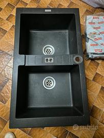 vendo doppia vasca per cucina in fragrante nero della Frenke con pilette nuove e sifone. ritiro a mano dimensioni esterne 82x50 cm profondo 27 cm le dimensioni delle vasche interne sono 33,5x42,5 cm profonde 20 cm