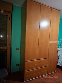 Doppio armadio per camera o cameretta in ottimo stato diviso in 2 pezzi con scrivania e comodino. Misure della parte con scrivania 150 x 265 profondità 40, altro pezzo 150 x 265 x profondità 60. Molto utile che si possa tenere unito o separato a seconda delle dimensioni disponibili. Completamente smontabile per il trasporto che comunque necessita un furgone. Prezzo richiesto 300 euro trat.
