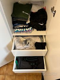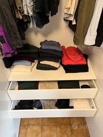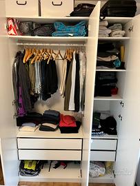 Vendo due armadi, marca Ikea, modello Forsand, colore bianco. Acquistati nuovi meno di 3 anni fa. Sono due unità indipendenti quindi possono essere usate anche separatamente e acquistabili singolarmente. Dimensioni: Altezza 236 cm, profondità 60 cm Larghezza armadio 1: 100 cm Larghezza armadio 2: 50 cm Accessori inclusi armadio 1: - 2 mensole - 2 cassetti - 1 appendiabiti Prezzo: 139€ Accessori inclusi armadio 2: - 4 mensole - 2 cassetti Prezzo: 69€