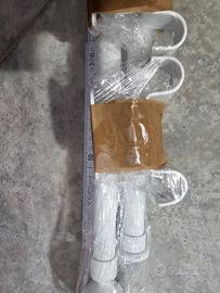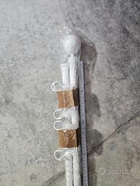 Vendo set completo di doppia asta per tende in metallo verniciato bianco. Il sistema è progettato per sostenere due tende contemporaneamente, perfetto per combinare tende filtranti e oscuranti.