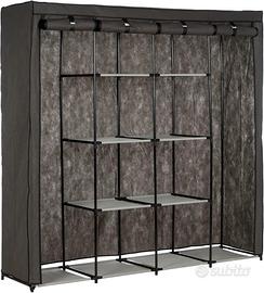Doppio Enrico Coveri Armadio Guardaroba Salvaspazio In Tessuto Con 10 Ripiani E Struttura Regolabile In Acciaio, Mobile Appendiabiti Multiuso Con Rivestimento Richiudibile Antipolvere