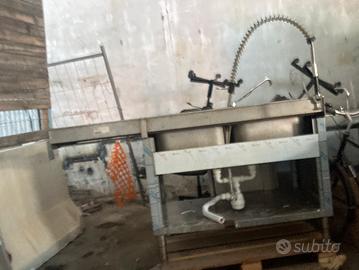 Lavello dopoio con gocciolatoio destra. Misura 180x70 con alzatina . Acciaio Lavello in ottime condizioni le foto purtroppo non rendono