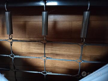 Letto con letto aggiuntivo a cassettone, entrambi con reti a maglia metallica. Il letto inferiore si estrae a cassetto (munito di ruote