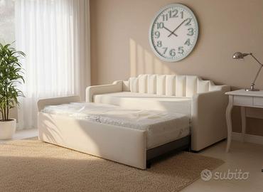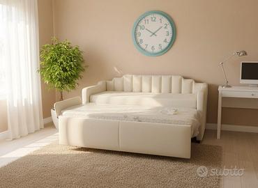 Doppio letto trasformabile in tessuto antimacchia DA REALIZZARE IN 20-30 GG. Doppio letto trasformabile mis.212x99 h.97cm con rete superiore e rete inferiore. n.2 materassi singoli mis.80x190 h.25cm con molle 1600 insacchettate. Rivestimento in tessuto antimacchia panna 01. Un comodo doppio letto trasformabile in stile contemporaneo che dona stile e comfort alla casa. Qualità ARTIGIANALE garantita! Acquistando da noi il cliente può scegliere tra una VASTA GAMMA DI COLORI e tipi di pellame fornito dalle concerie italiane. Su richiesta spediamo i campioni. La struttura interna dei nostri salotti è fatta di legno multistrato di pioppo, imbottitura in poliuretano espanso a densità differenziata e su richiesta: la seduta in piuma d'oca o in memory foam. Piedini in legno massello verniciati o rivestiti in pelle. - Lavorazione artigianale 100% made in Italy (con certificazione). - Possibilità di visitare lo showroom previo preavviso di almeno 1 giorno - Possibilità di spedizione gratuita di campioncini di pelle. - Consegna a bordo stradale o al piano con facchinaggio. - FINANZIAMENTI IN SEDE DA 3 A 24 RATE A TASSO ZERO